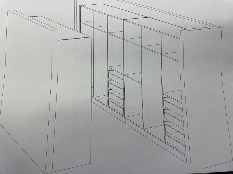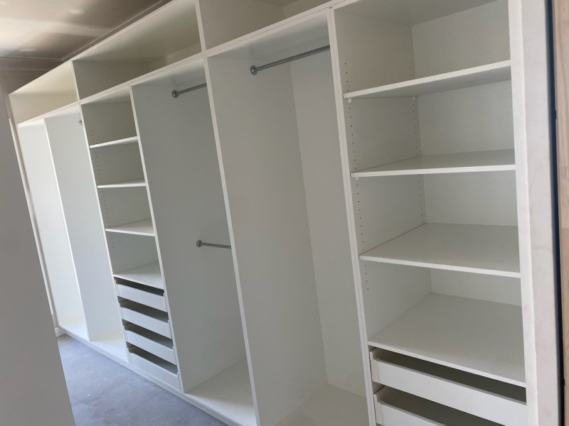 The Laundry was done using the same colour scheme and materials, the walk in robe was designed with maximising the usable space and keeping the cost down using white carcass board and BLUM metabox inner drawers.