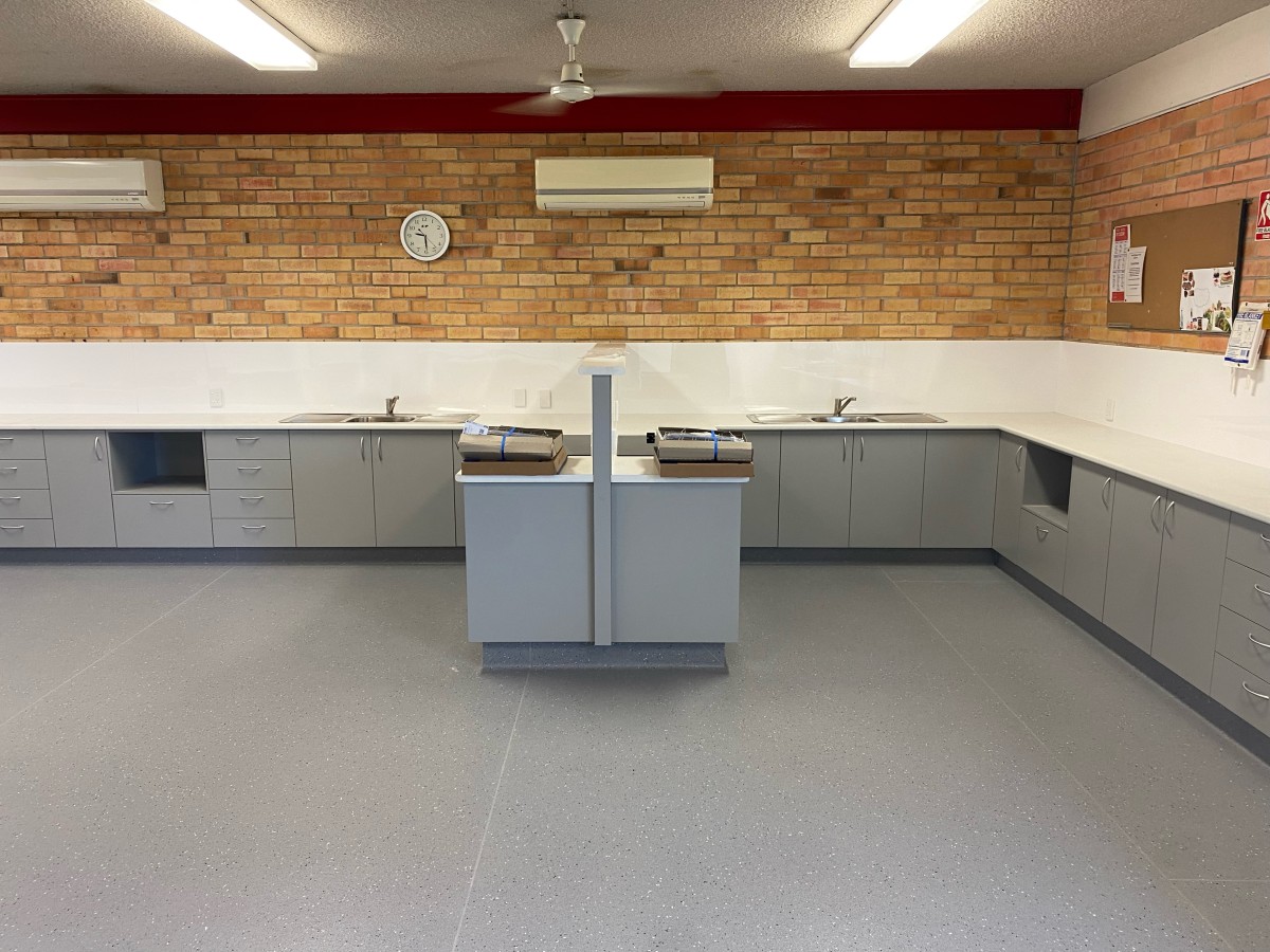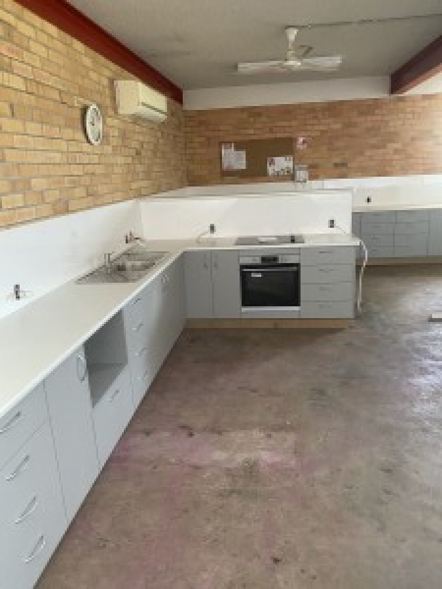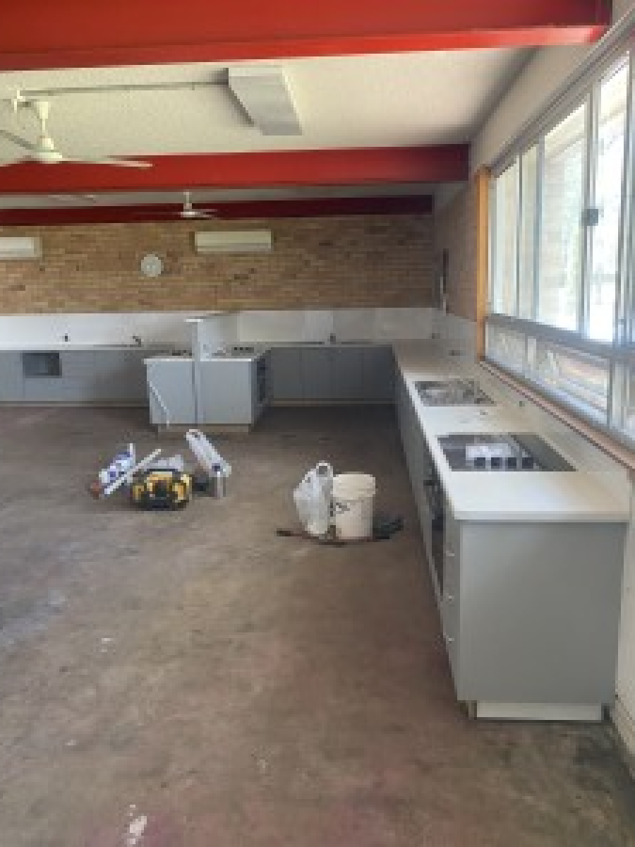 From concept, design, removal of asbestos, removal of old cabinetry and replacing with new functional cabinetry, upgrading the plumbing and electrical services, upgrading the flooring and appliances. It has breathed new life into old out worn school room and is uplifting environment for the current and future students and teachers.