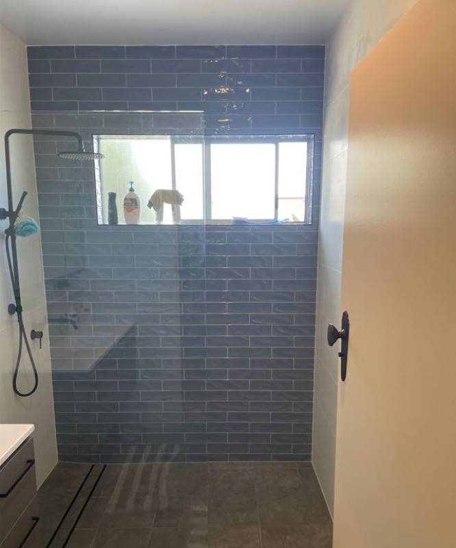 - Custom made Shower Screen with black mounting brackets